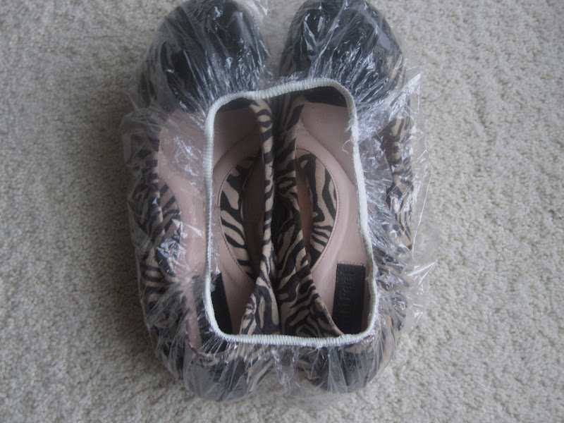 The solution: shower caps. They fit around most shoes perfectly, can be drawn tight to prevent any dirt from escaping. Best of all with some rinsing, you can even use the same shower cap in the bathroom.