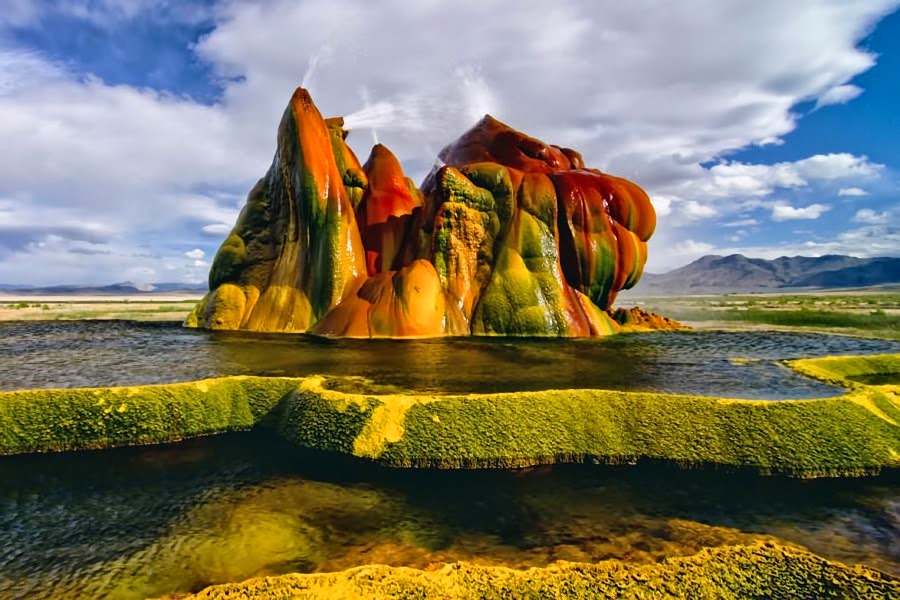 What looks like a digital-artist gone wild is actually a man-made geyser inside a private ranch in Nevada, USA. The geyser was made in the 1960s when an improperly sealed oil well started sprouting up dissolved minerals around the well’s exterior.